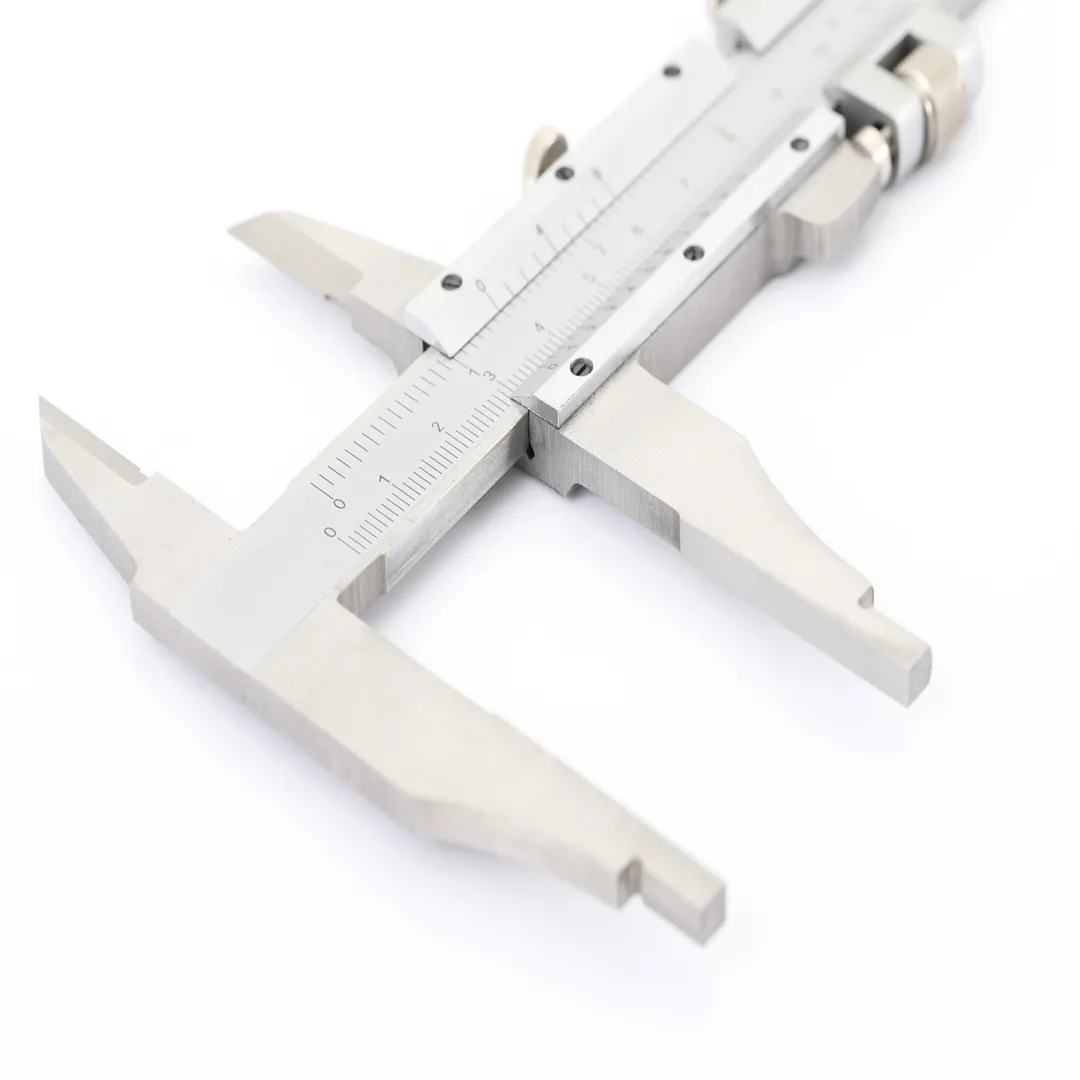 مجهز به تنظیم دقیق فک‌های سختکاری شده و سنگ‌زنی شده با سطوح اندازه‌گیری لپ‌کاری شده با دقت بالا پوشش کروم مات، ساخته شده از فولاد ضدزنگ سختکاری شده در تمام قسمت‌ها برای طول عمر بیشتر خطوط و اعداد واضح حکاکی‌شده بر روی پوشش کروم مات